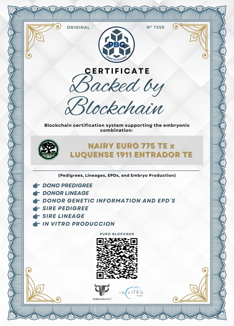 Each blockchain certificate is supported by productive, genetic, and biotechnological data.Enhanced commercial value